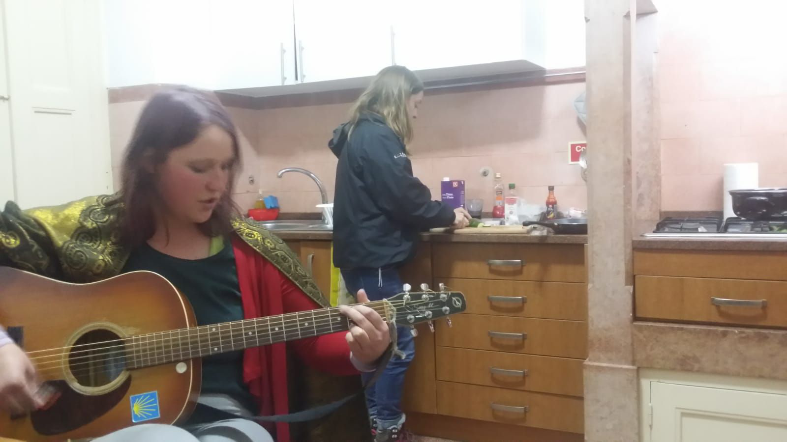 WE HAVE A FUN EVENING WITH OUR NEW FRIEND HANS WHO WE MEET IN THE KITCHEN. HE IS FROM THE NETHERLANDS AND TRAVELLING WITH A FRIEND. LIISA PLAYS SOME TUNES, I COOK A SALLY VERSION OF CARBONARA, (A VEGAN VERSION FOR HANS) AND WE HAVE A GREAT EVENING!
