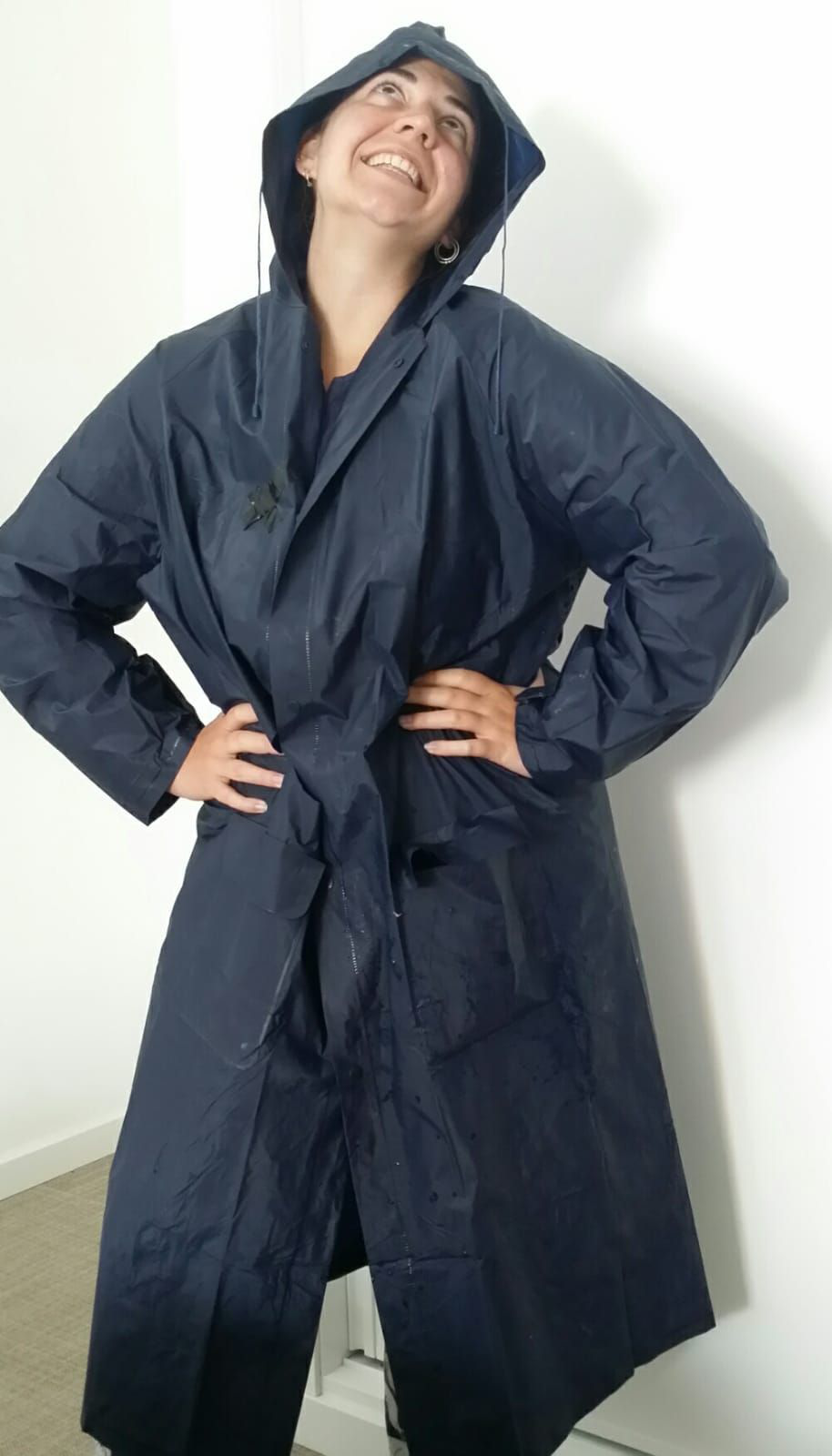 A mist of rain followed us along the forest tracks, until eventually we landed down in Sao Teotonio, a cute little town. On the advice of Jolien’s dad we looked for the church as he had assured her the best bar would always be beside God, and sure enough, it was! Rain was on it’s way, and at nearly 5pm, the temperature was dropping so we headed to the sheltered terrace and ordered two bottles of well deserved Super Bock beer. Beer tastes so amazing after a hike, it takes on a new taste dimension, sparkling, energising and meant to be… There was a general store opposite, selling mainly massive knickers, rugs and bags, but also hideous extra large raincoats. Jolien tried a couple on, deciding the white translucent number was a tad pervert, she went for the navy option (slightly less sexual predator, and also surprisingly slimmimg) For 5 euros it seemed to be pretty decent – the thick plastic oozed quality and Jolien left the store looking super slim and reassured.