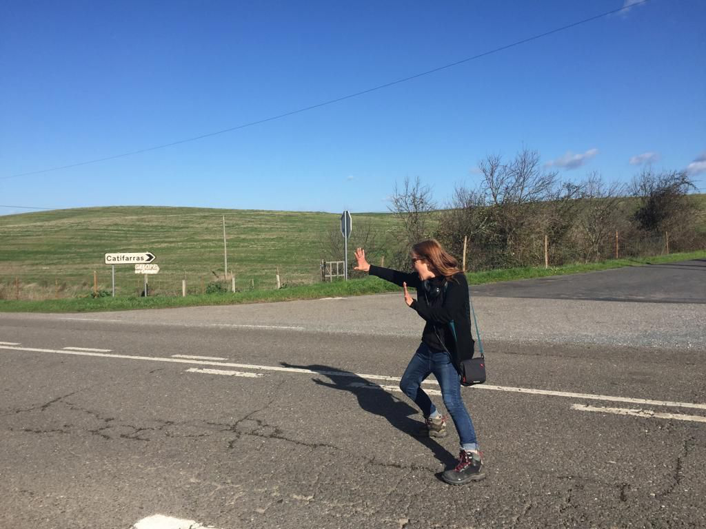 The hitch was slow. The first 2 lifts from old chaps who appeared to tell us they would drop at our destination – Sao Teotonio,, but didn’t…. something was lost in translation and they both dropped us just a few kilometres down the country roads. We ended up eating our packed lunches sat at a bus stop, cars passing only every 15 minutes or so…. We tried various hitching techniques…..