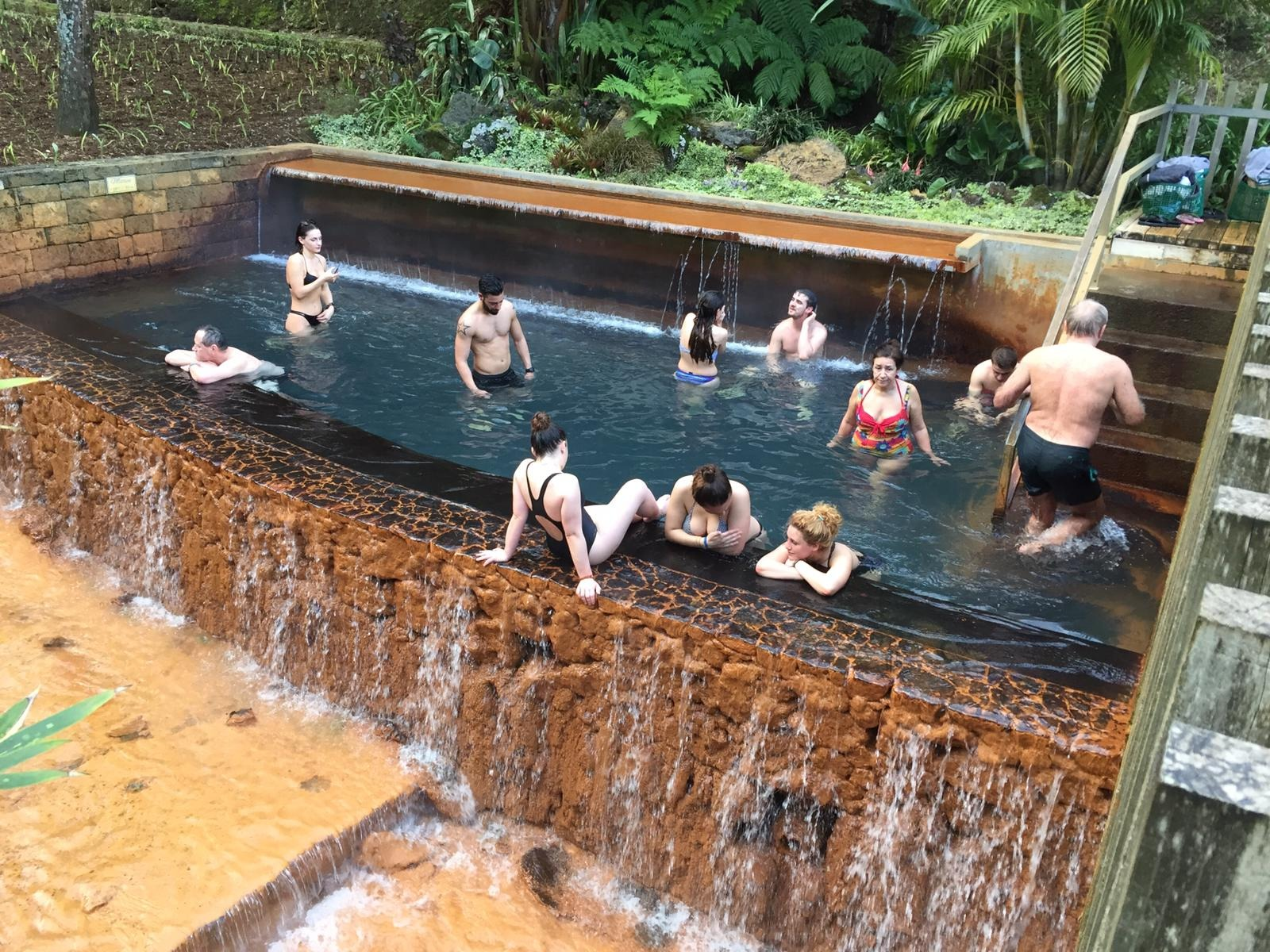 The house was central in the town and the two thermal baths were close by, as well as markers for the walks around the nearby lake. We headed out to try the furthest spa, about 5 minutes away on foot – the Poca da Dona Beija. These thermal pools are part of the natural phenomenon that results from the volcanic activity in the valley of Furnas. The place had 5 pools each supplied with the therapeutic waters stored underground. Apparently the water is heated and enriched by minerals in the surrounding stones, before being forced back to the surface by high pressure!