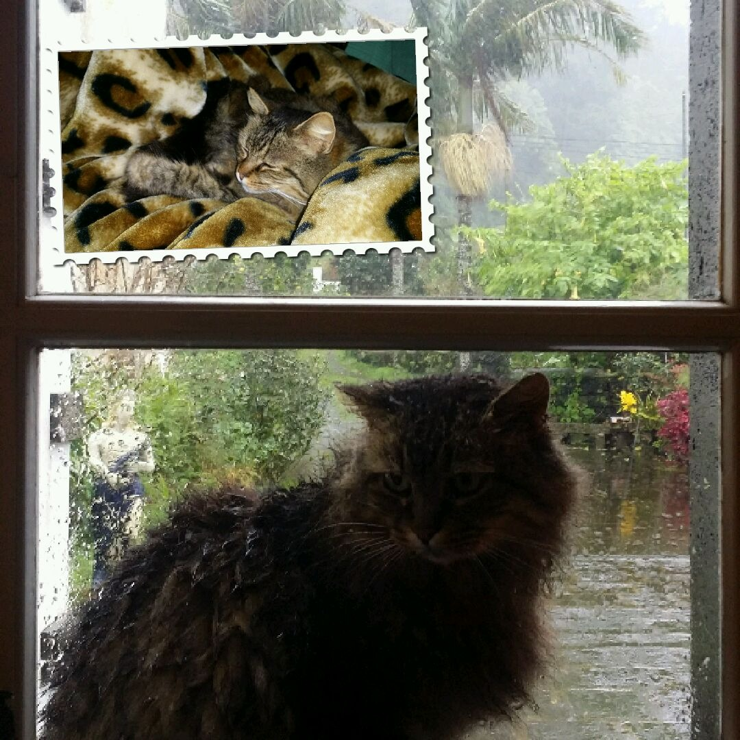 We settle in for the day and indulge in the guilt free chilling out that only a rain soaked day can offer. Jolien gets the fire burning early and I keep us well stocked with pancakes served with fried bananas, or lemons and sugar. We drink a lot of herbal tea and watch a lot of Netflix. Even Jose’s cats demand entry and come and snuggle down for the day….