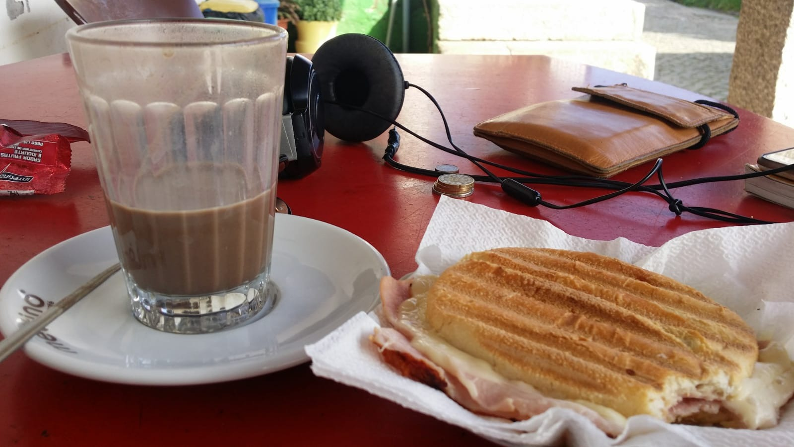 About 9km in Anna and I stopped for a tosta misto (ham and cheese toastie – the tortilla of Portugal!) and a hot chocolate. It was sunny and hot but I just fancied something sweet. In hindsight the two are a terrible combination but I was tired and not thinking…. The little bar was in the village of Revolta and was small and humble with prices to match. 1E60 for a very good tosta! Then I was on my way again, listening to my Spanish lessons as I plodded along through more beautiful scenery.