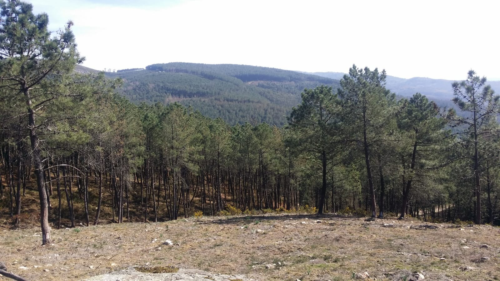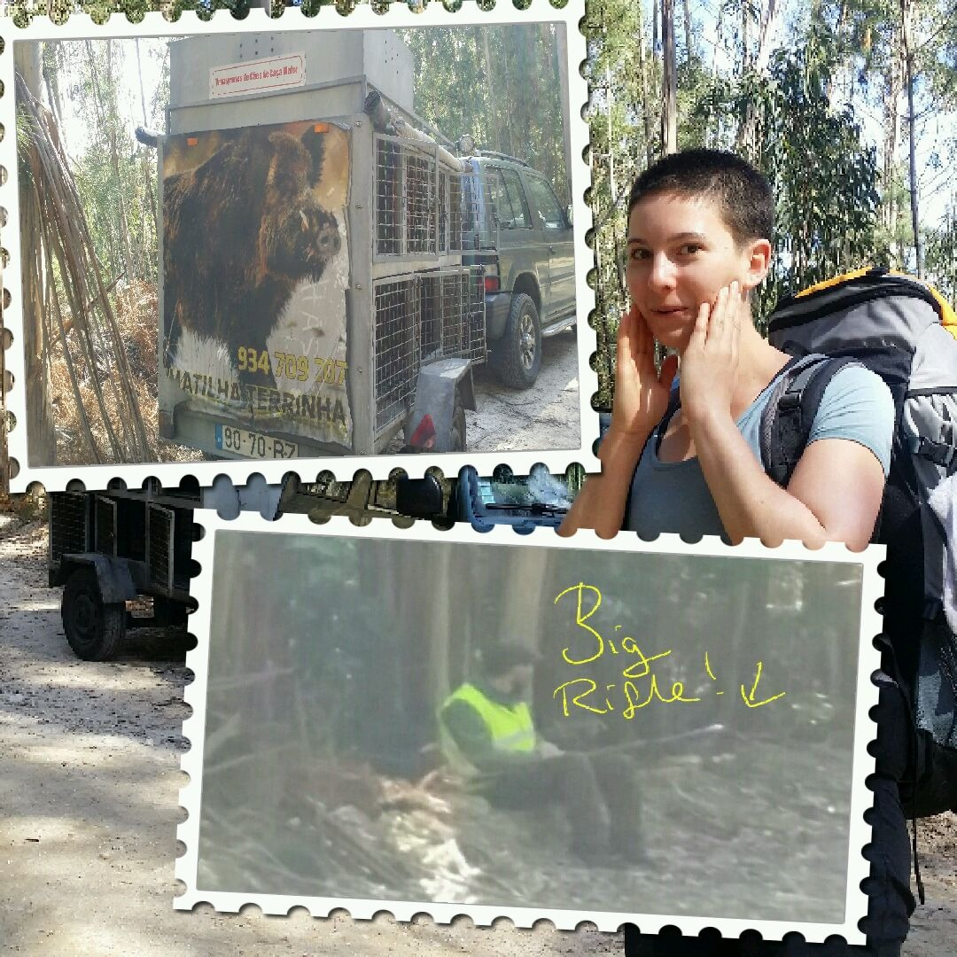 Anna was well ahead of me and I had moved from Spanish to a very loud and happy Spotify mix on my headphones. I was aware of some muffled barking somewhere but paid it no heed till I came across a very nervous looking Anna sitting on a tree stump in the forest. Beside her was a large van with cages inside for hunting dogs and a large picture of a wild boar on the back… The barking we had heard was the excited pack out hunting their prey and along the forest road, every 100metres or so, was a hunter man sat waiting with a rifle in hand for the dogs to chase the boar down and out of the forest on to our path!!! Scary. I asked one of the armed men in my terrible Spanish whether we were okay to walk between the rifles and the hunt and he assured me he was aware I was around, I think….. However, my Spanish is pretty terrible and also he was Portuguese!! Soon we headed up in to the boar infested woods…