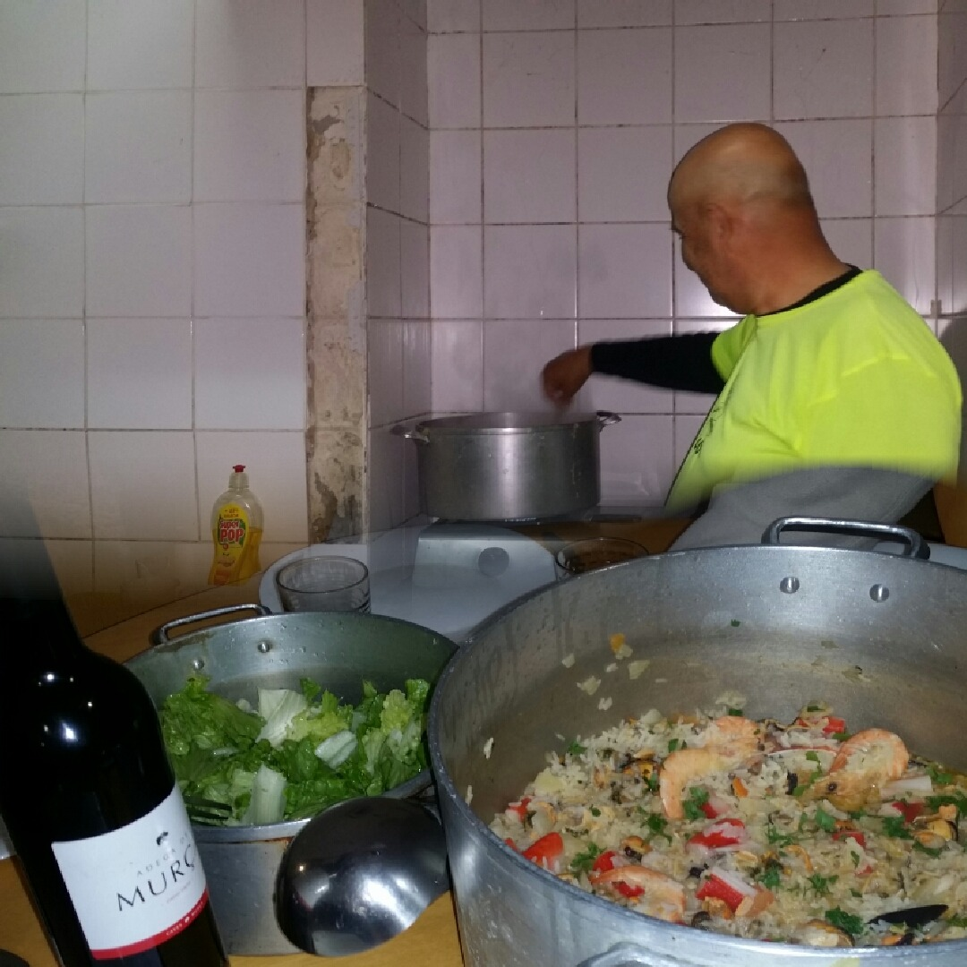 The public albergue (Albergue Escola) is okay, but after a few days you start to get a bit fed up of them as they are all very similar. Old buildings, sometimes quite characterful, but with dull interiors and minimal, basic, functional furnishings. There is nothing pretty or frilly or warm or cosy about them. They are a little institution-y with their plastic coated mattresses and stark tiled facilities. The 3 noisy happy Portuguese pilgrims fromyesterday’s albergue were staying there and we bumped in to them at ‘the’ village bar on out way back from the supermarket (about 500metres away along the busy road.) We joined them for a wine and learned that the blokes are 2 cousins (mid fifties) called Alfonso and Adelino, and the woman is Adelino’s 26 year old daughter, Tanya. They are walking from Porto to Valenca so tomorrow will be their last day, and returning to complete their Camino in Spring. They had bought a huge bag of frozen seafood to make an arroz marinera and invited us to join so we trotted back to the supermarket to purchase a bottle of wine and a large vienetta to offer to the proceedings!