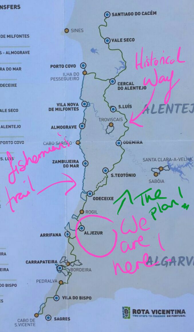 Today was meant to be ‘leaving Dagasoul’ day but Jolien had been enjoying her hiking this week and decided she’d hike the trail up to Lisbon with me. We decided to stay one more day and night here in Aljezur and prepare!
